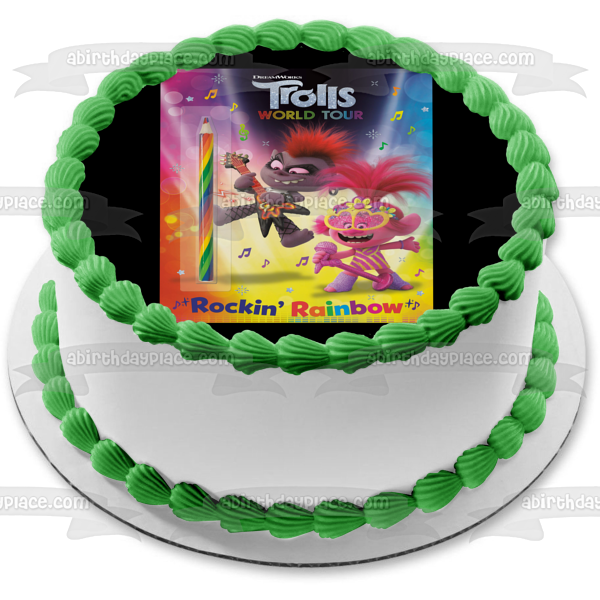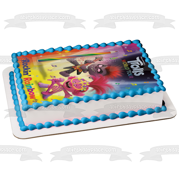 Trolls World Tour Rockin' Rainbow Poppy Singing Queen Barb Playing Guitar Edible Cake Topper Image ABPID51240