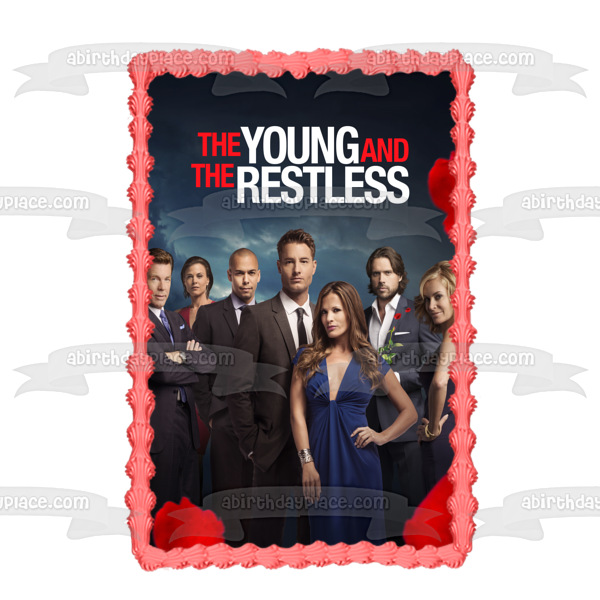 Decorate your Cake with this The Young and the Restless themed Edible Cake Topper Image featuring Jack Abbott, Nicholas Newman, Devon Hamilton, Avery Bailey Clark and Chloe Mitchell!