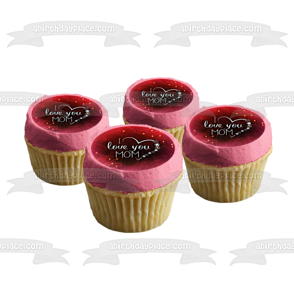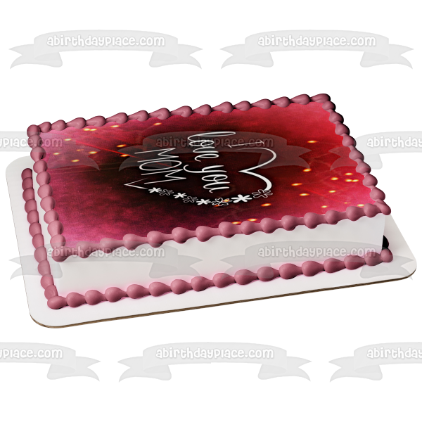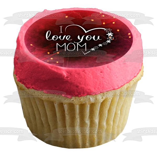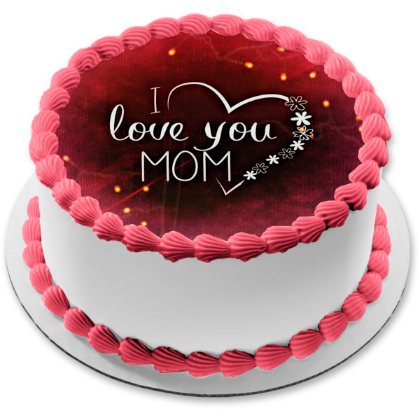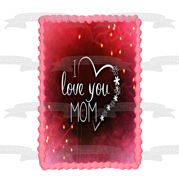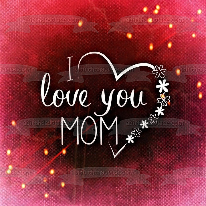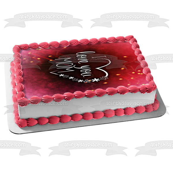 I Love You Mom Happy Mother's Day Flower Heart Edible Cake Topper Image ABPID51270