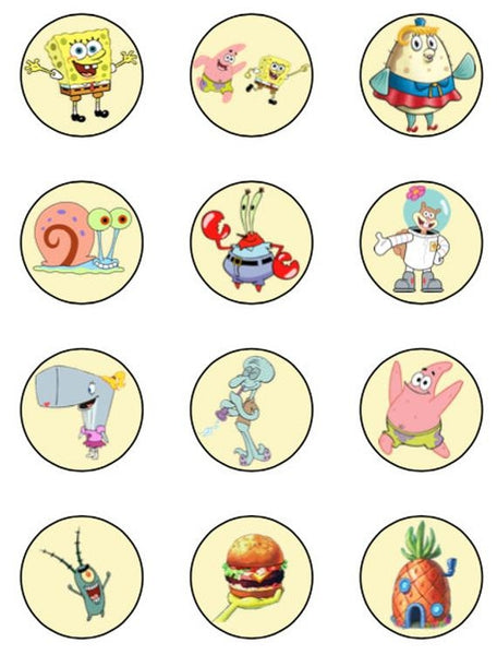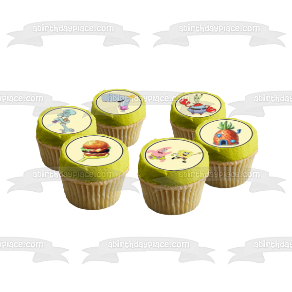 Decorate your Cupcakes with these 12 Count SpongeBob SquarePants themed Edible Cupcake Topper Images featuring Patrick, Gary, Mr. Krabbs, Sandy, Squidword, Mrs. Puff, Pearl Krabbs, Plankton,a Krabby Patty and SpongeBob’s Pineapple House!