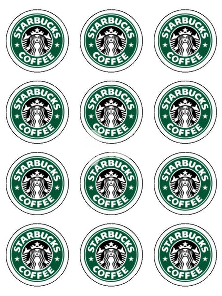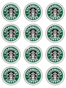 Decorate your Cupcakes with these 12 Count Starbucks Coffee themed Edible Cupcake Topper Images featuring the Starbucks Logo!