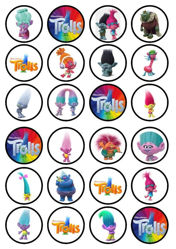 Trolls World Tour Queen Poppy Guy Diamond Branch Biggie Cooper Edible Cupcake Topper Images ABPID51351