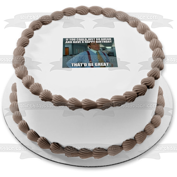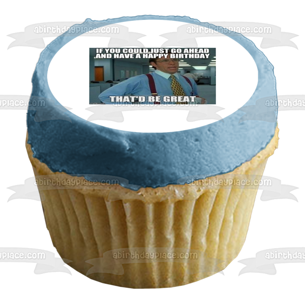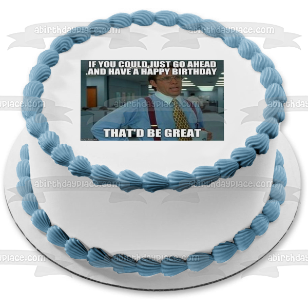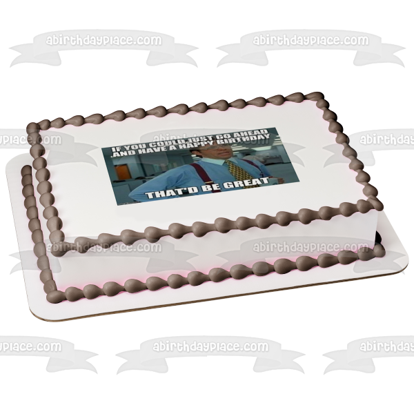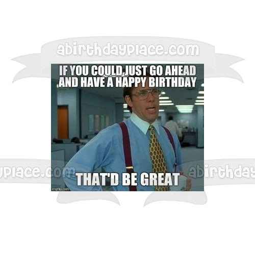 Decorate your Cake with this Office Space Happy Birthday Meme themed Edible Cake Topper Image featuring Bill Lumbergh and the words If You Could Just Go Ahead and Have A Happy Birthday That'd Be Great!
