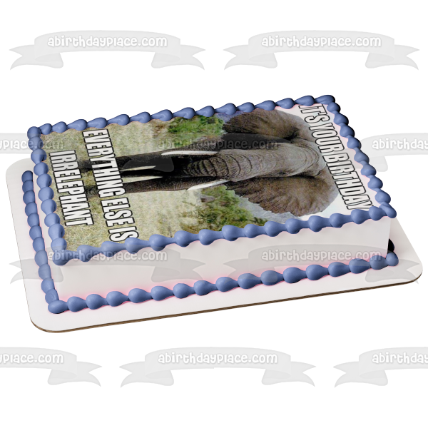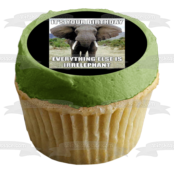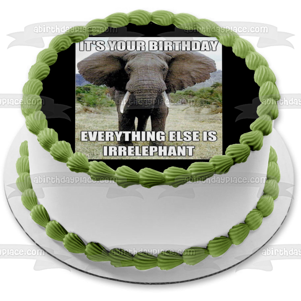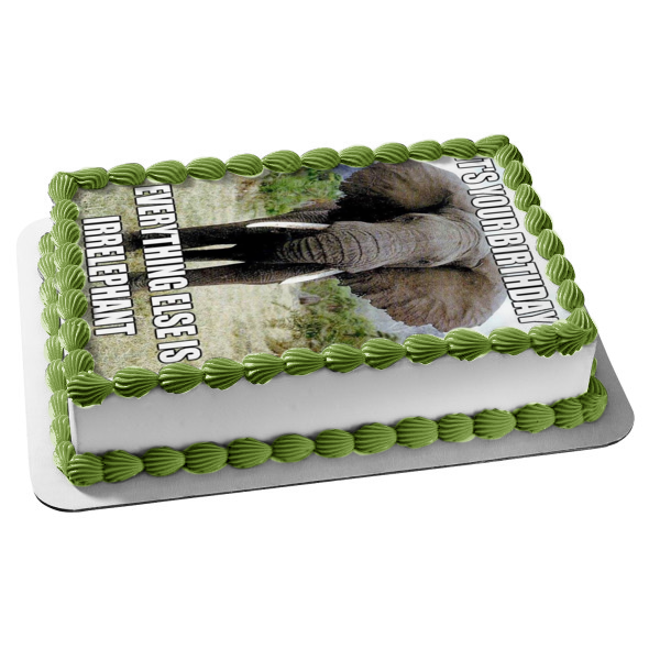 Decorate your Cake with this Happy Birthday Meme themed Edible Cake Topper Image featuring an Elephant and the words "It's Your Birthday, Everything Else is Irrelephant"!