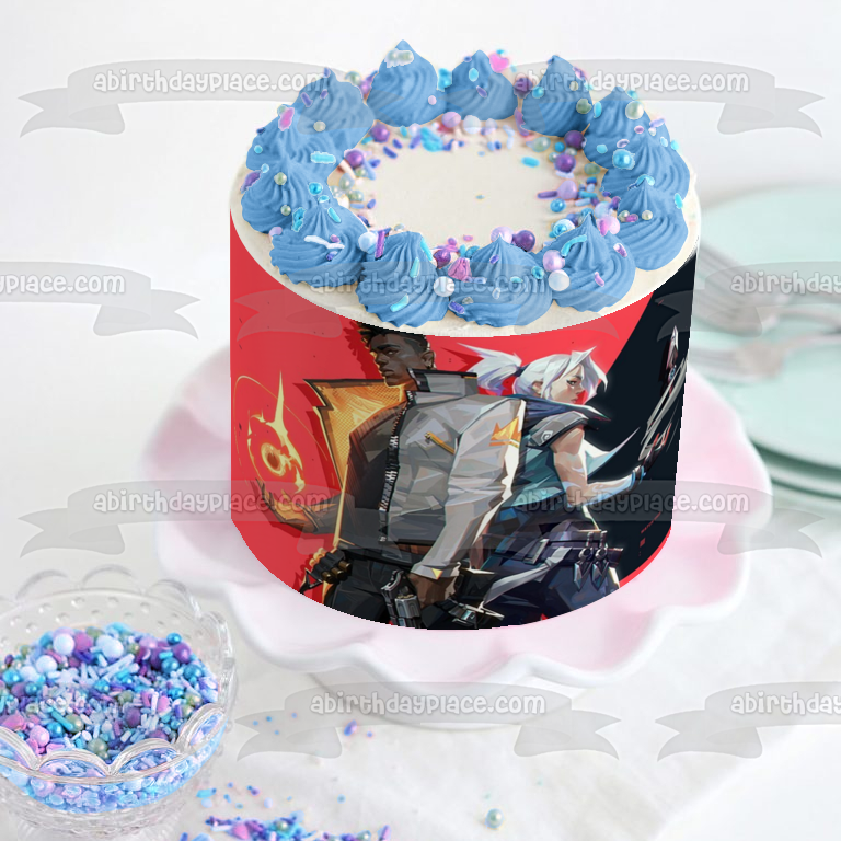 Decorate your Cake with this Valorant themed Edible Cake Topper Image featuring Jett and Phoenix!