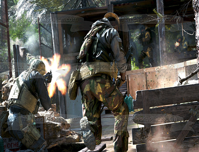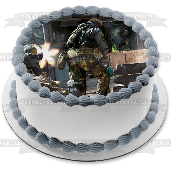 Decorate your Cake with this Call Of Duty: Modern Warfare themed Edible Cake Topper Image featuring a Gunfight!