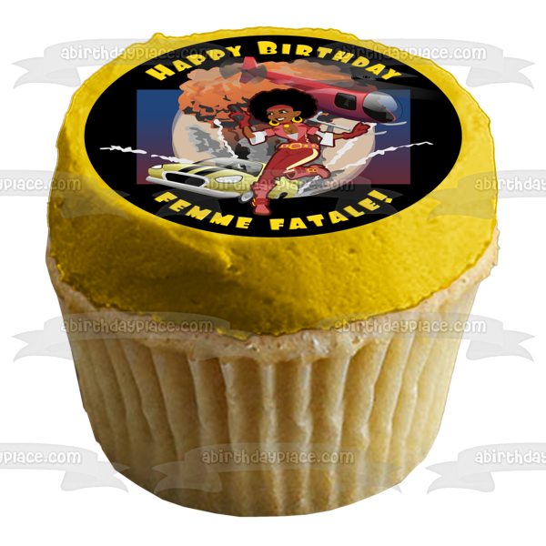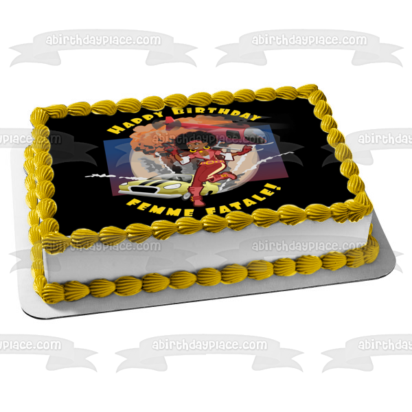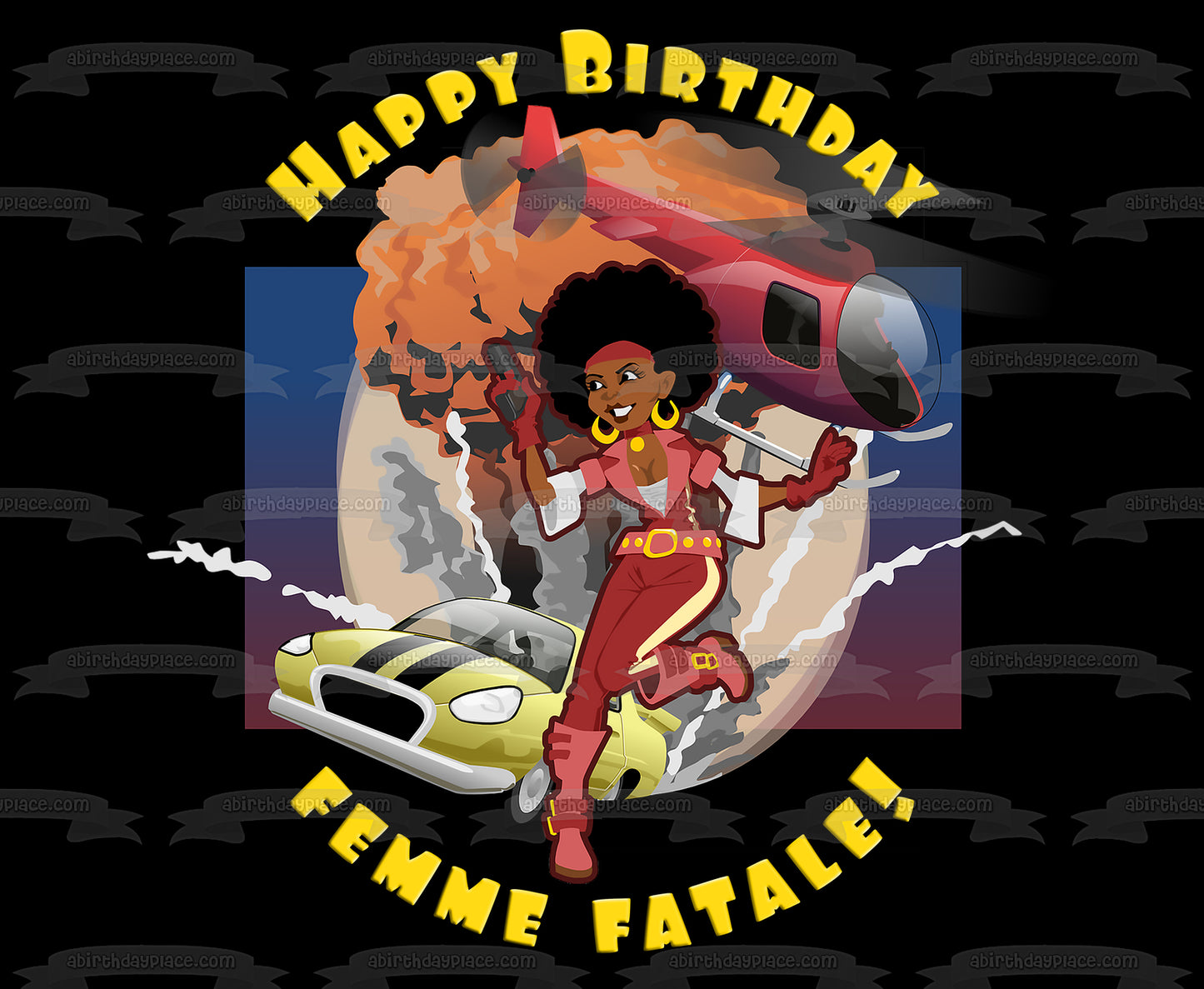 Femme Fatale Spy Explosion Party Edible Cake Topper Image ABPID51980