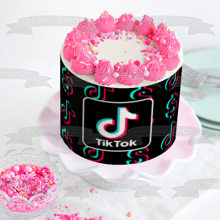 Decorate your Cake with this Tik Tok themed Edible Cake Topper Image featuring the Tik Tok Logo and Dollar Signs!