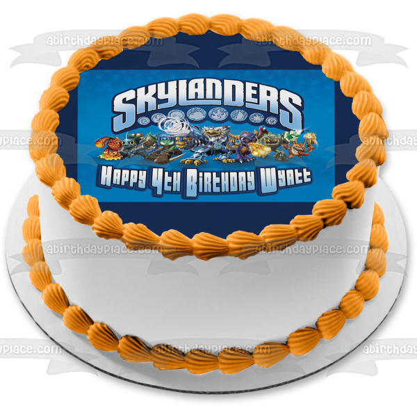 Personalize your Cake with this Skylanders Happy Birthday themed Edible Cake Topper Image featuring Stealth Health and Jet-Vac!