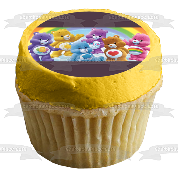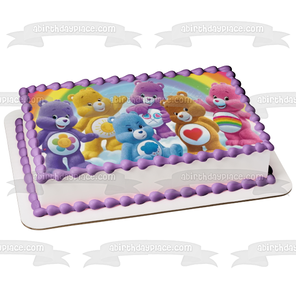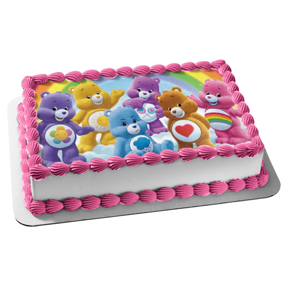 Decorate your Cake with this Care Bears and Cousins themed Edible Cake Topper Image featuring Funshine Bear, Grumpy Bear, Share Bear and Harmony Bear!