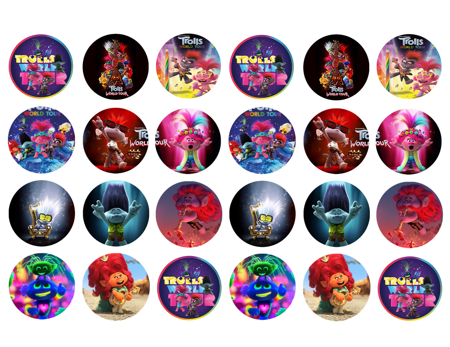 Decorate your Cupcakes with these Trolls World Tour themed Edible Cupcake Topper Images featuring Branch, Poppy and Queen Barb!
