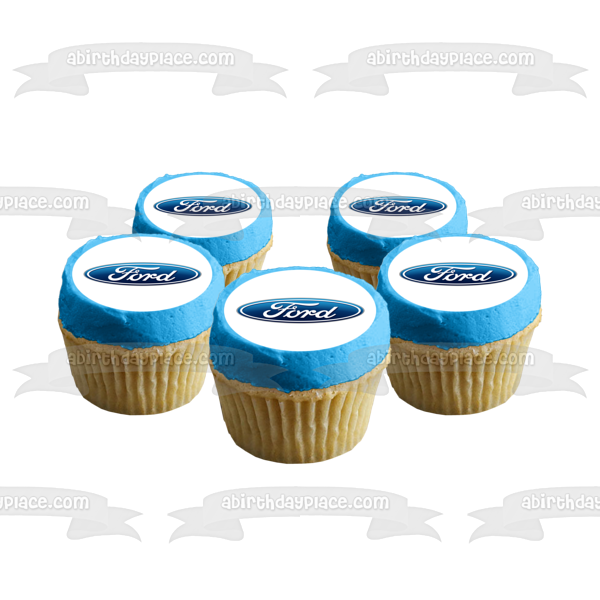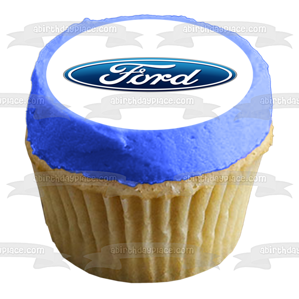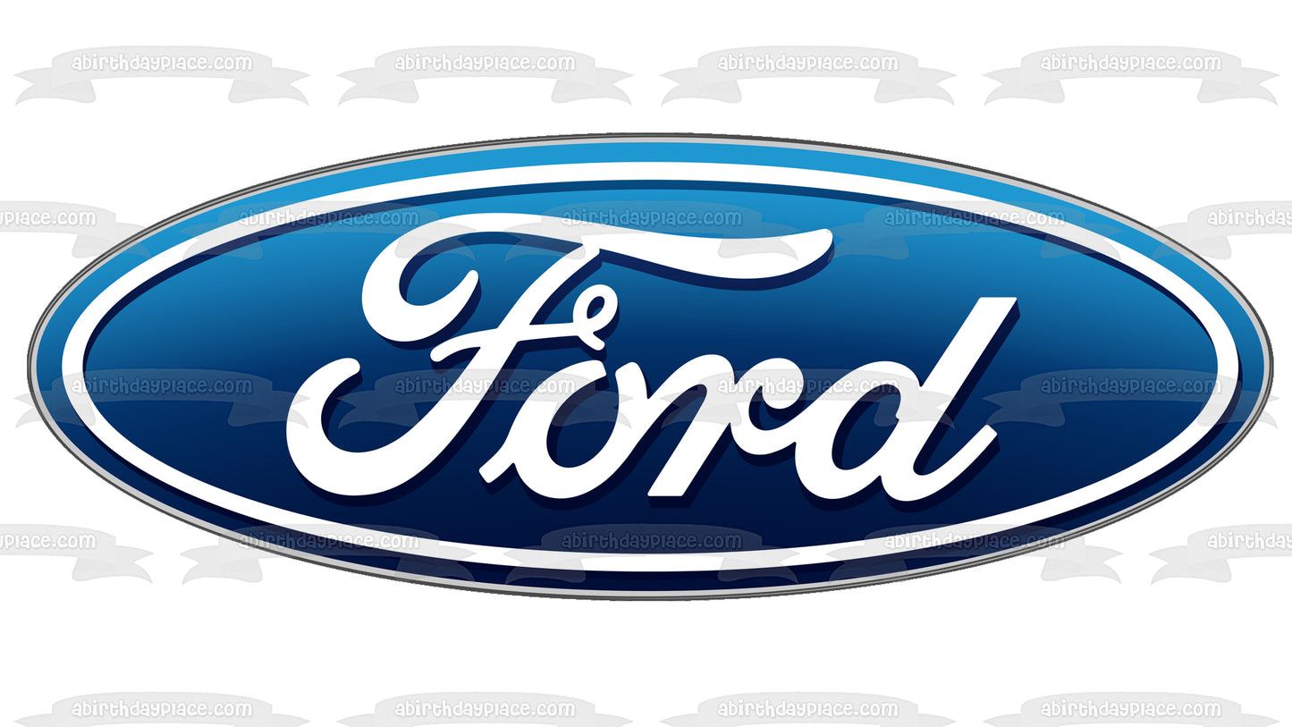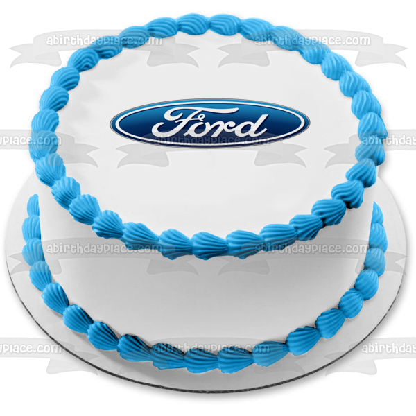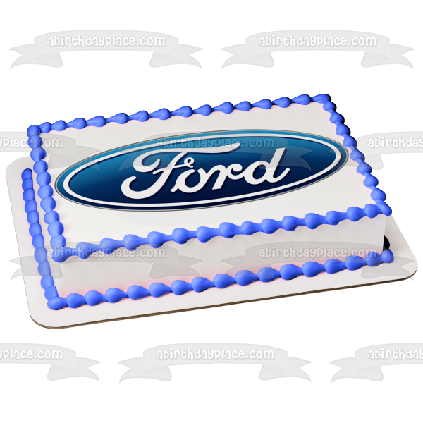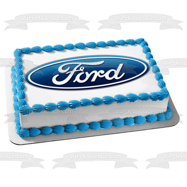 Decorate your Cake with this Car Company themed Edible Cake Topper Image featuring the Ford Logo in Blue and White!