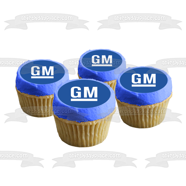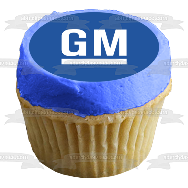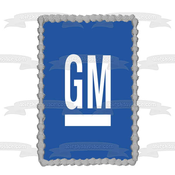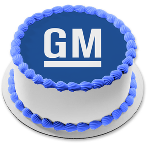 Decorate your Cake with this Car Company themed Edible Cake Topper Image featuring the General Motors Logo in Blue and White with the letters GM!