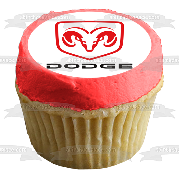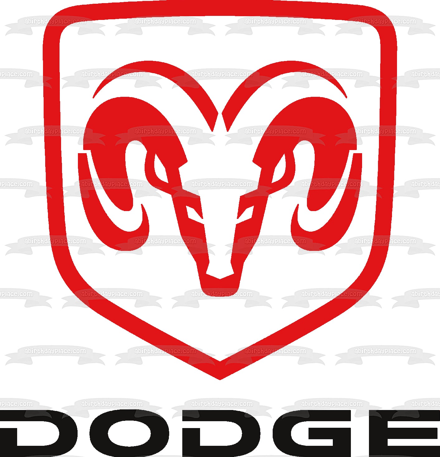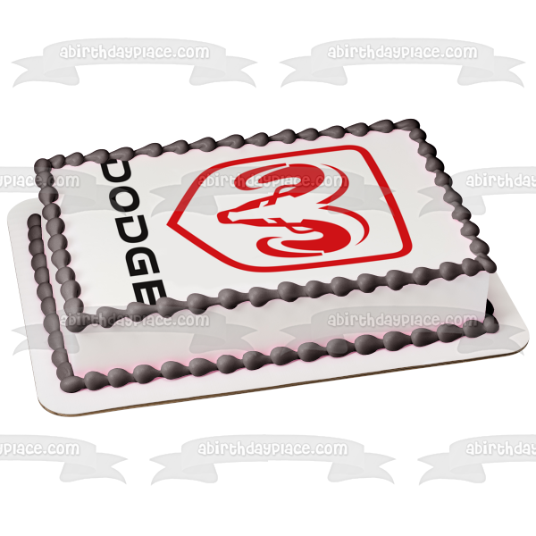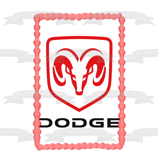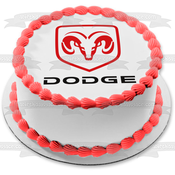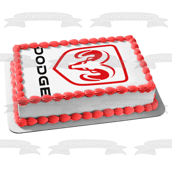 Decorate your Cake with this Car themed Edible Cake Topper Image featuring The Dodge Logo in Red and Black featuring a Ram's head!