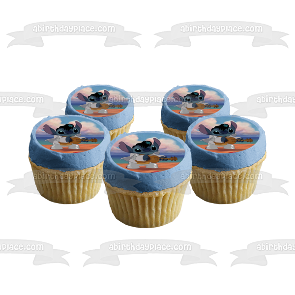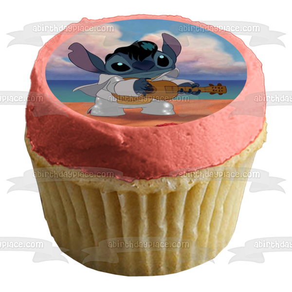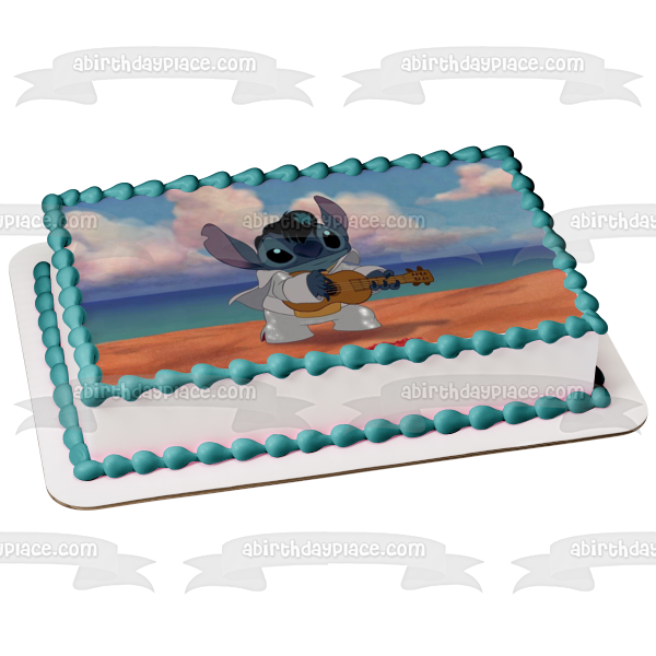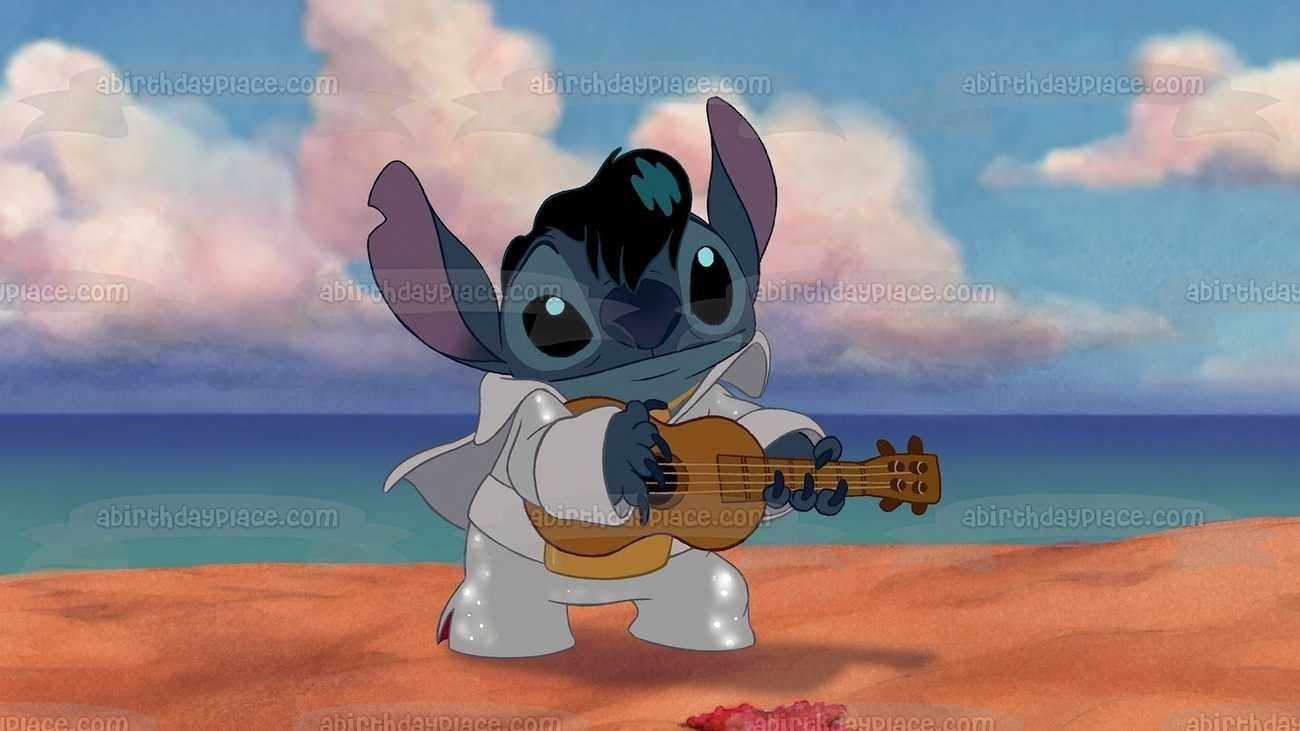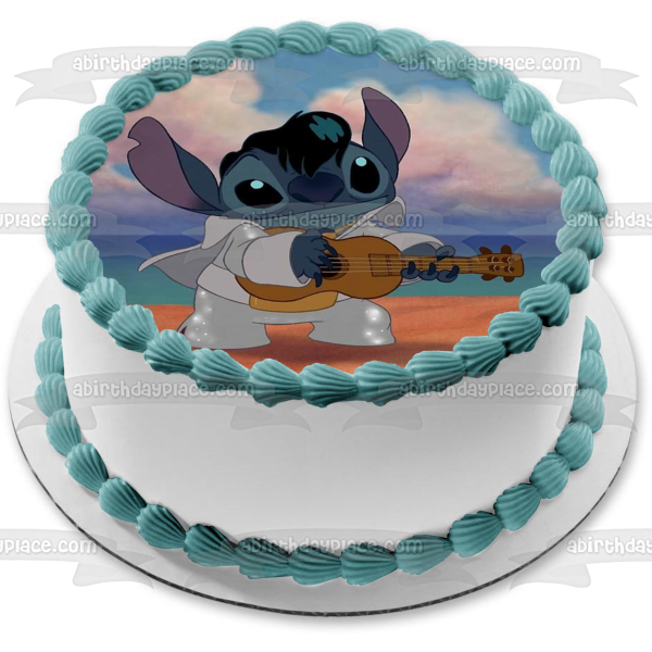 Decorate your Cake with this Lilo and Stitch themed Edible Cake Topper Image featuring Stitch dressed as Elvis and playing the Ukelele!