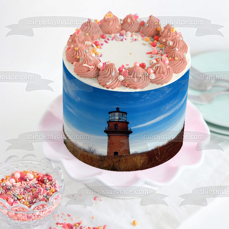 Decorate your Cake with this Lighthouse themed Edible Cake Topper Image featuring Gay Head Light in Martha's Vineyard!