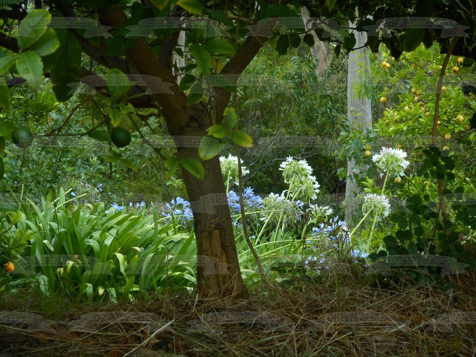 Decorate your Cake with this Purple Flowers and Trees themed Edible Cake Topper Image!
