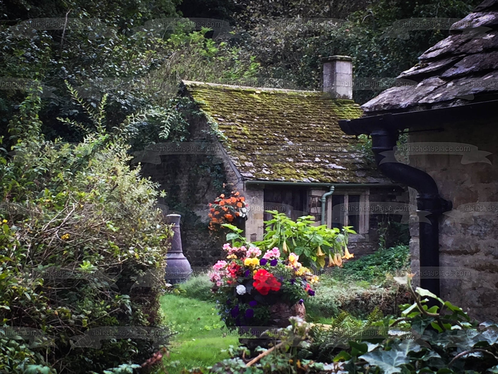 Village Home Surrounded by Flowers and Trees Edible Cake Topper Image ABPID52566