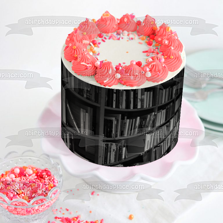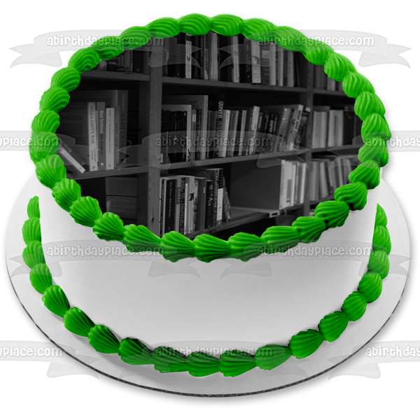 Decorate your Cake with this Library Book Shelf themed Edible Cake Topper Image!