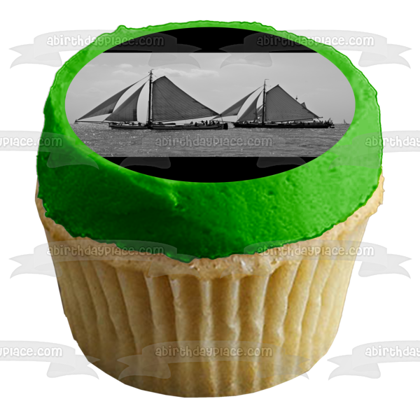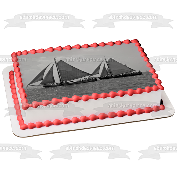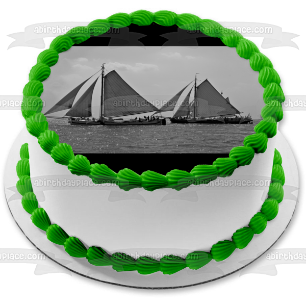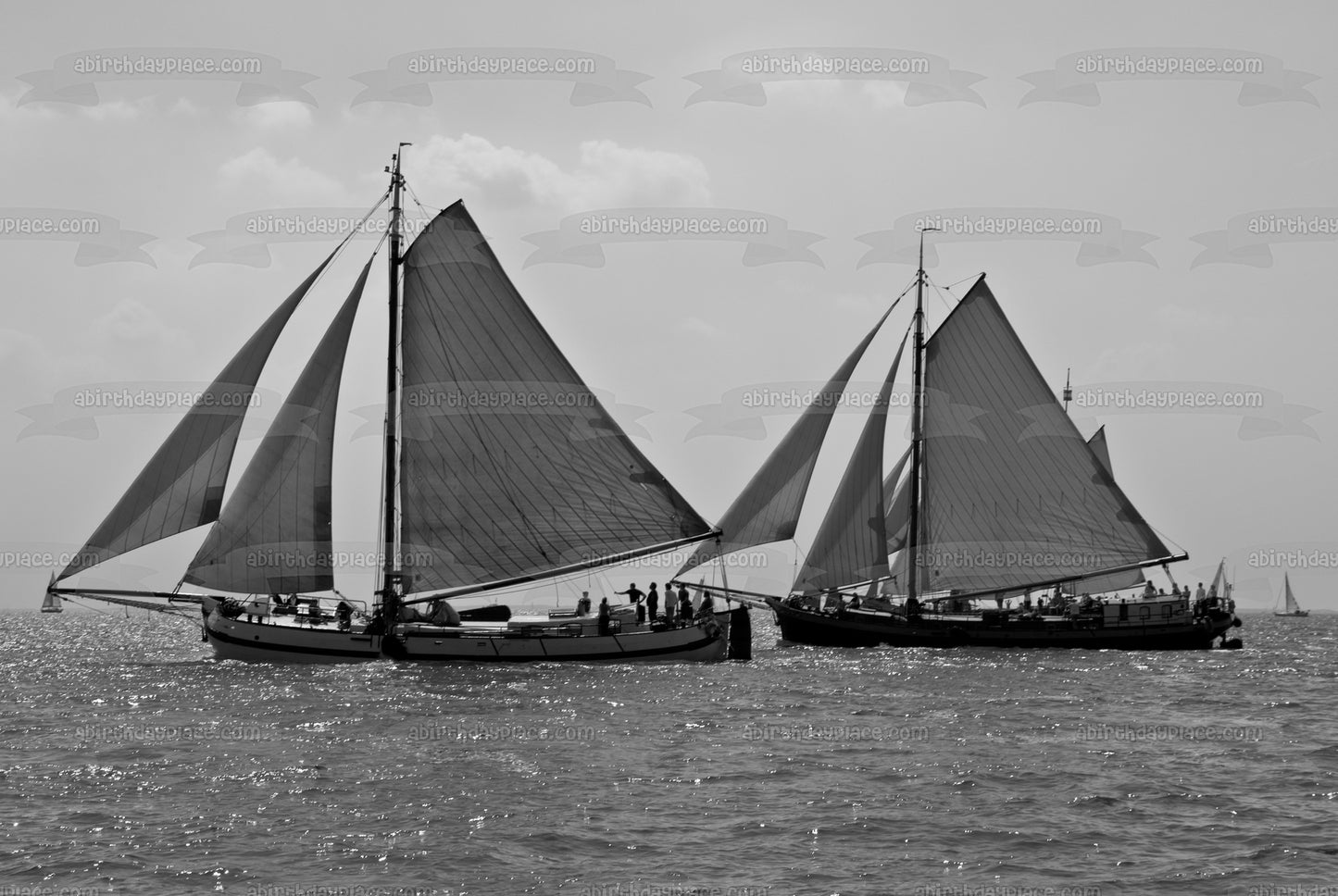 Sailboats Black and White Edible Cake Topper Image ABPID52593