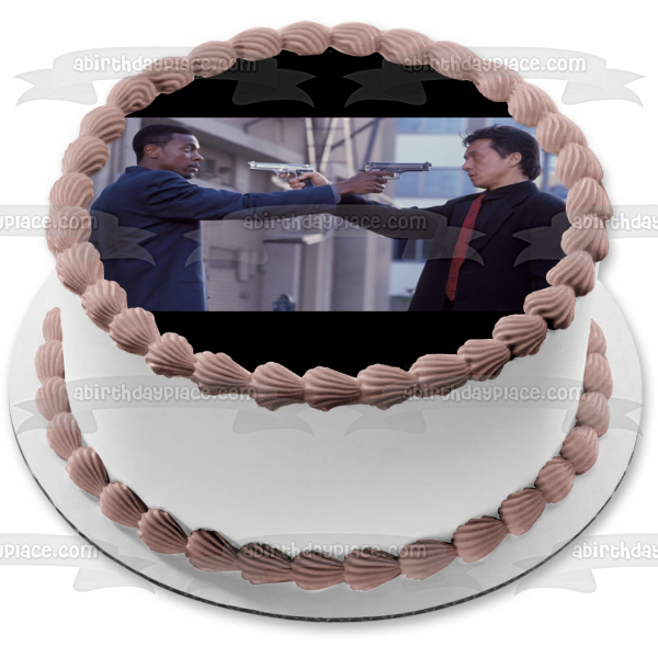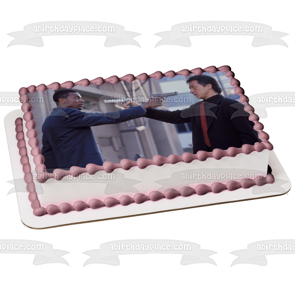 Decorate your cake with this Rush Hour themed Edible Cake Topper Image featuring Jackie Chan and Chris Tucker!