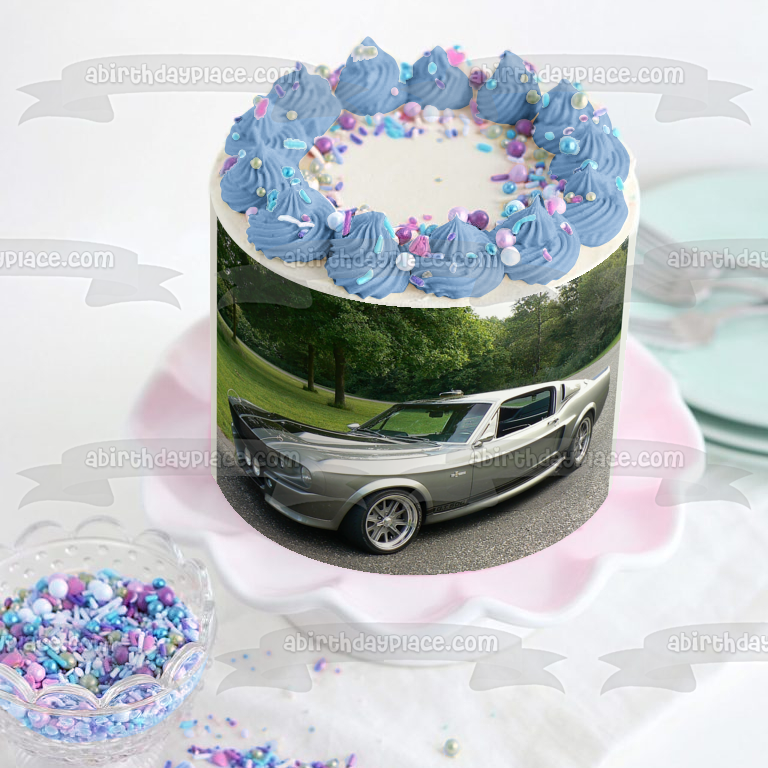 Decorate your Cake with this Automobile themed Edible Cake Topper Image featuring the 1967 Mustang GT500 Fastback!