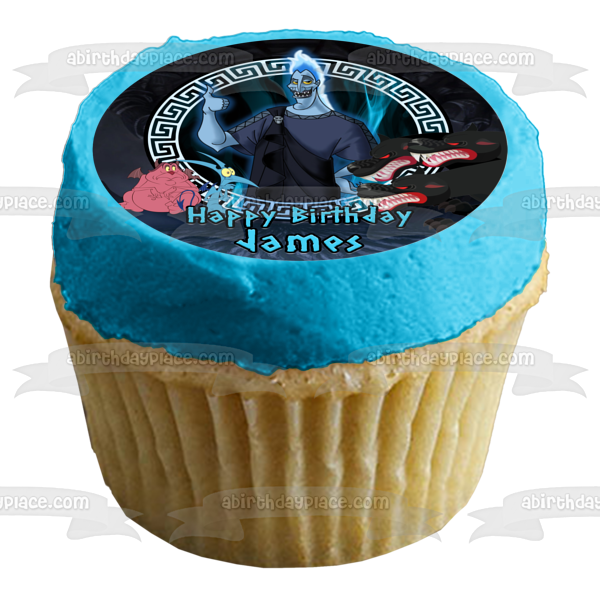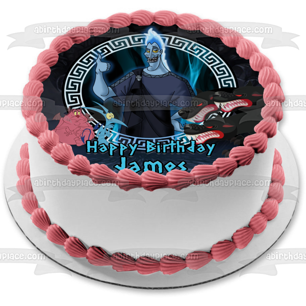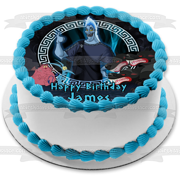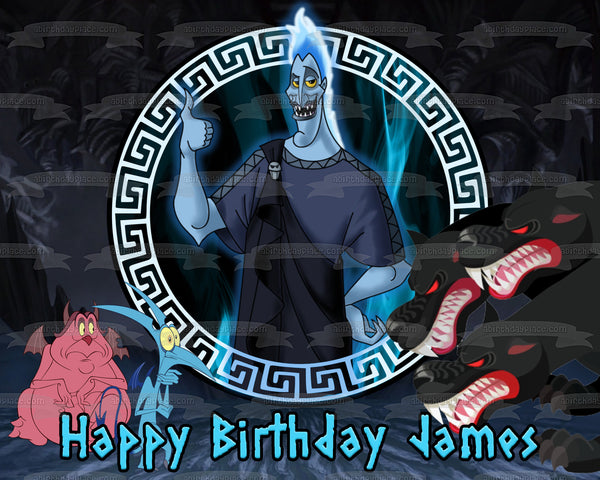 Disney Hercules Hades Cerberus Pain and Panic Happy Birthday Your Personalized Name Edible Cake Topper Image ABPID52842