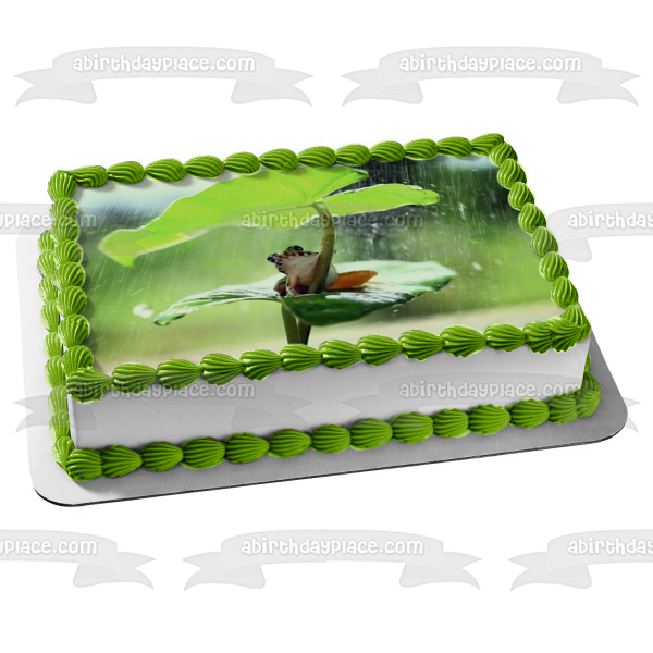 Frog Leaf Rain Nature Animal Outdoors Edible Cake Topper Image ABPID52946