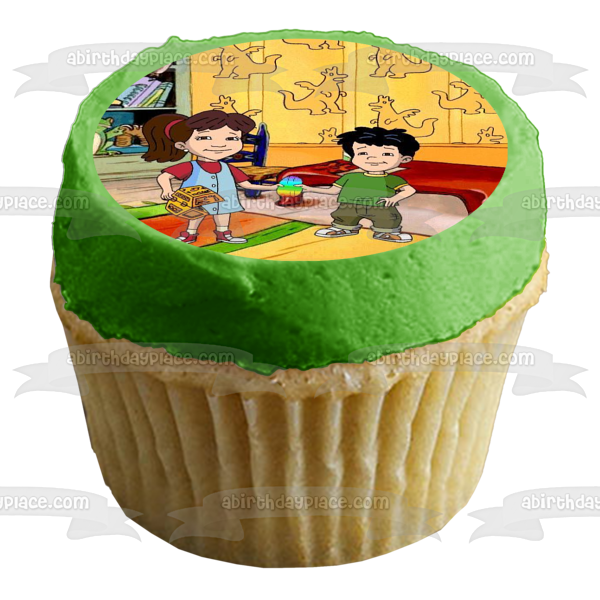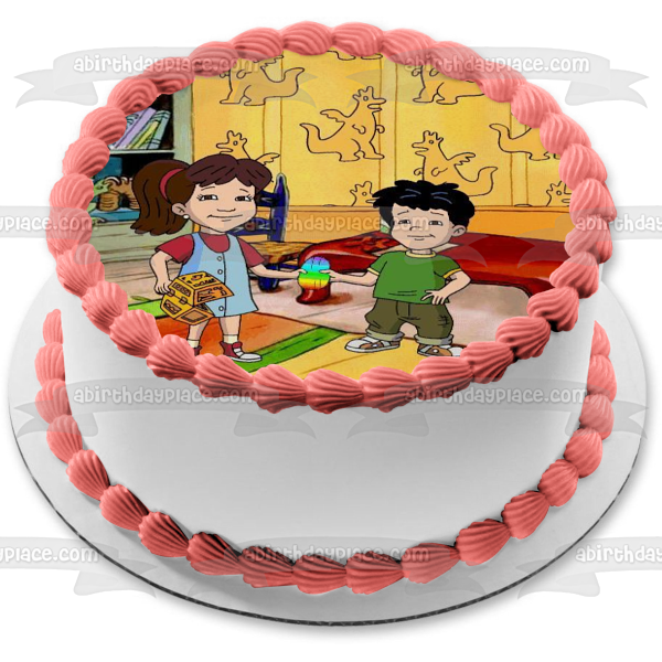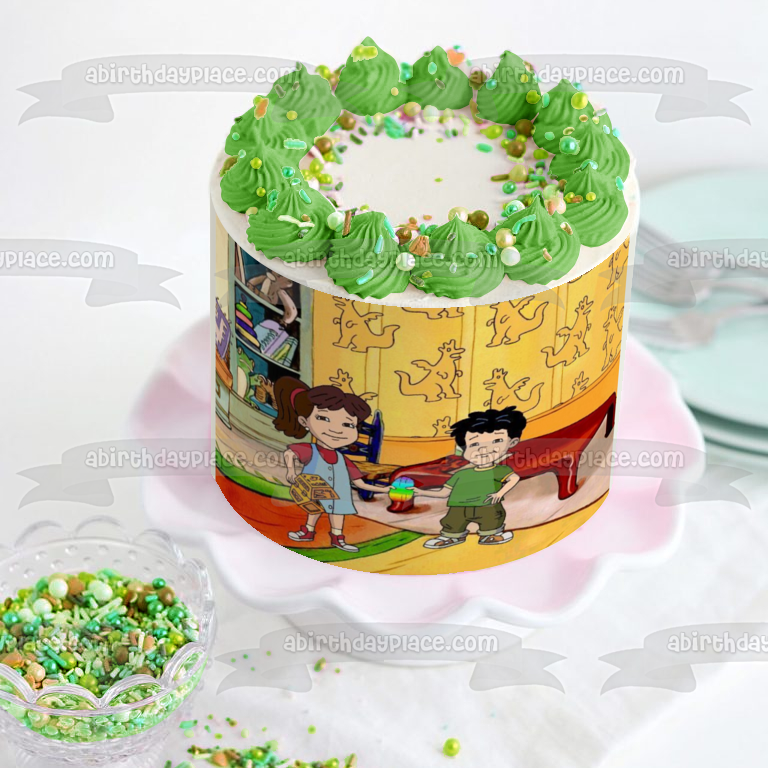 Decorate your cake with this Dragon Tales Themed Edible Cake Topper Image featuring Emmy and Max!