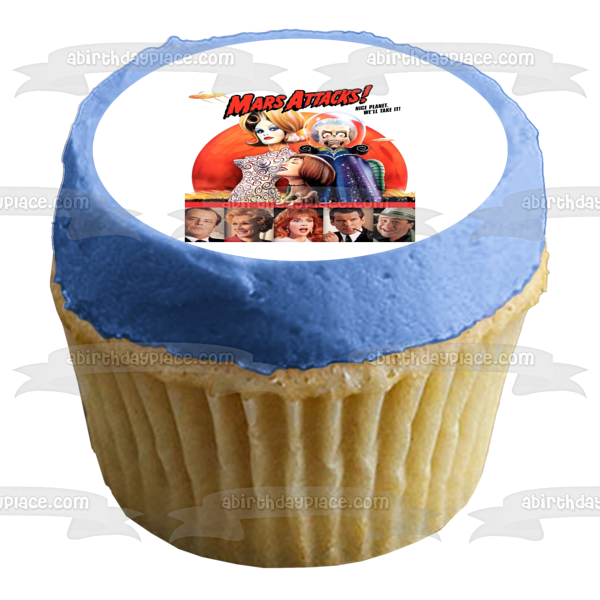 Mars Attacks Movie Poster SciFi Film Martian Girl Art Land First Lady Marsha Dale Professor Donald Kessler Edible Cake Topper Image ABPID52956