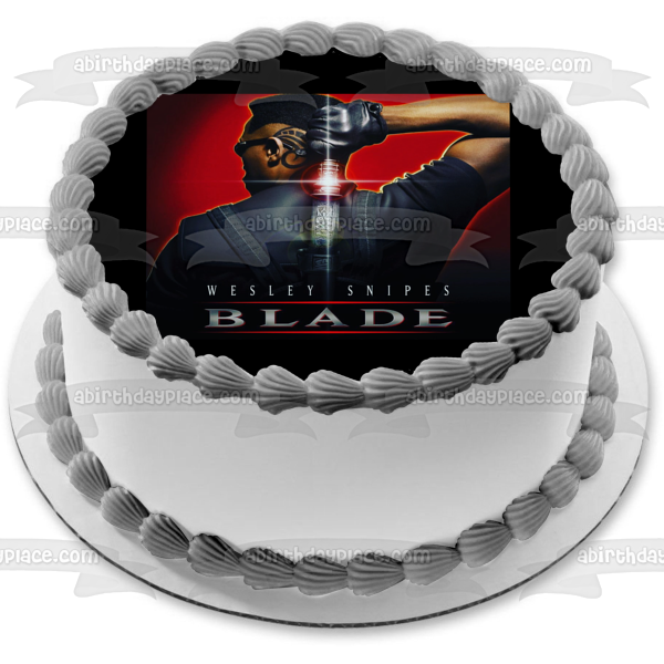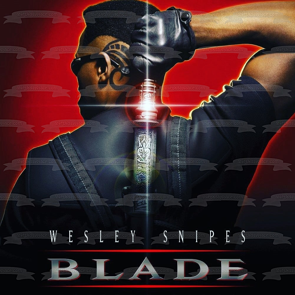 Decorate your Cake with this Blade themed Edible Cake Topper Image featuring Blade with his Sword on the Movie Poster!