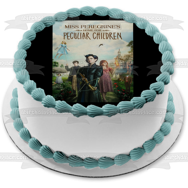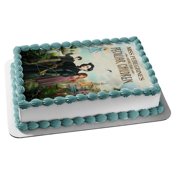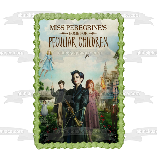 Decorate your Cake with this Miss Peregrine's Home For Peculiar Children themed Edible Cake Topper Image featuring Miss Alma Peregrine, Olive Elephanta and Jacob Portman on the Movie Poster!