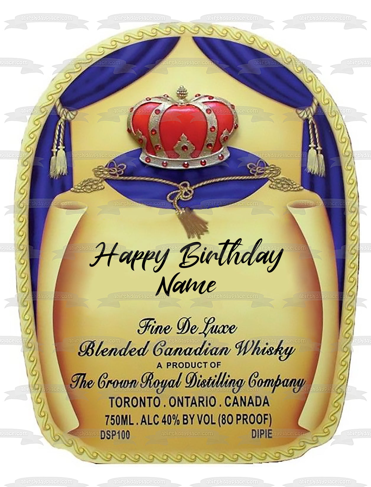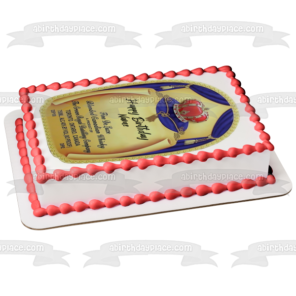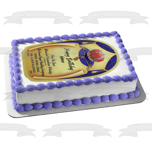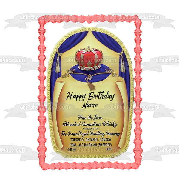 Personalize your Cake with this Crown Royal Happy Birthday themed Edible Cake Topper Image featuring the Crown Royal Label and Your Personalized Name!