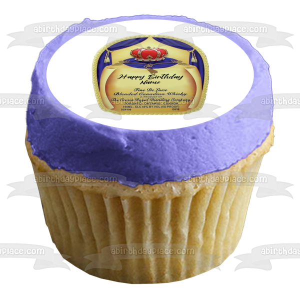 Crown Royal Alcohol Whiskey Bottle Label Happy Birthday Personalized Name Edible Cake Topper Image ABPID52994