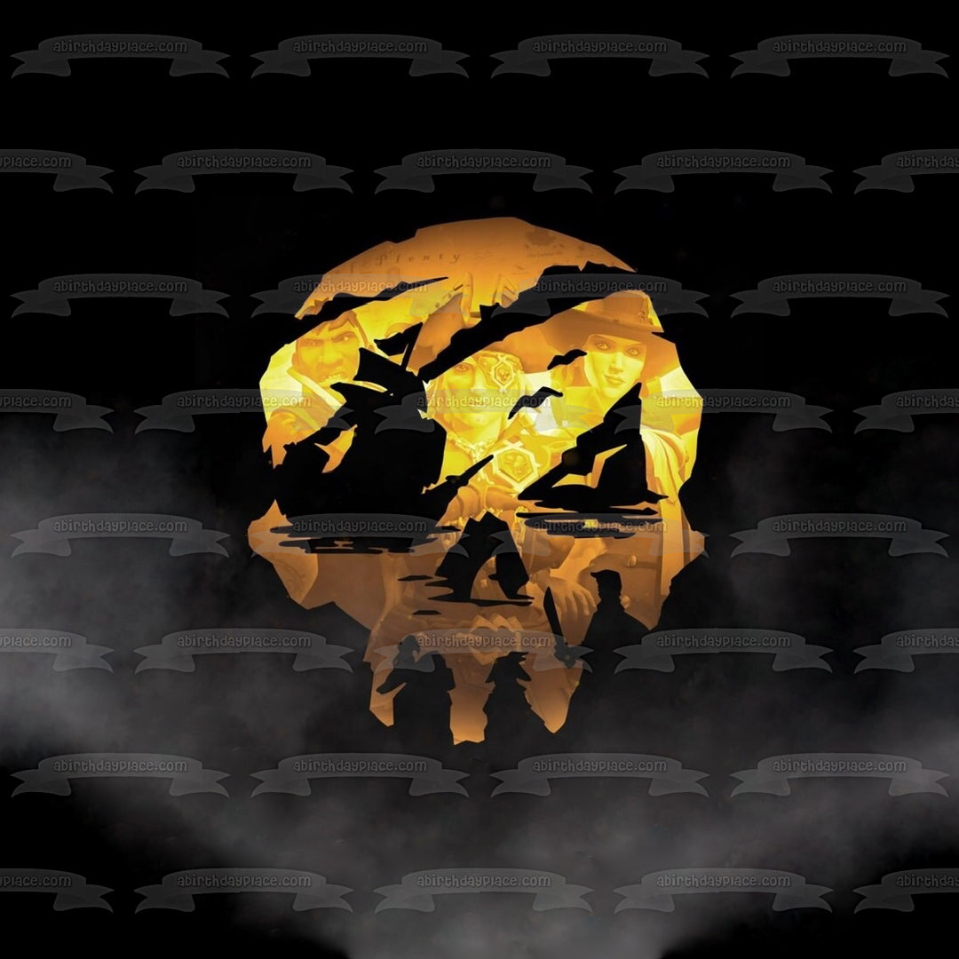 Sea of Thieves Pirate Skull Gaming Logo Edible Cake Topper Image ABPID53016