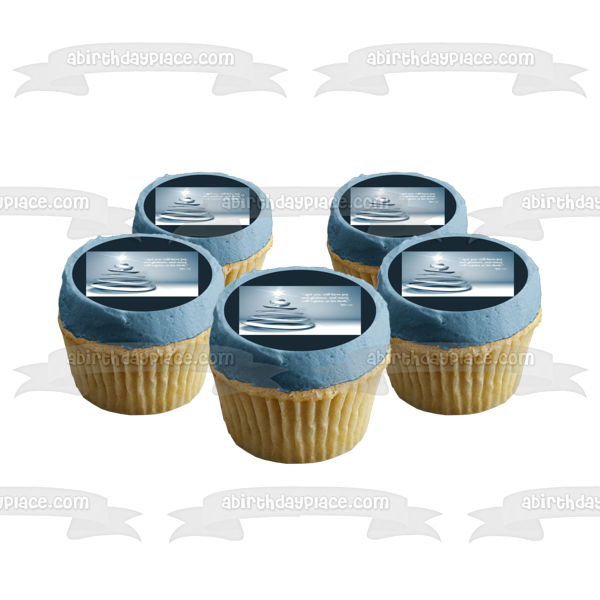 Merry Christmas Religious Inspiration Silver Christmas Tree Edible Cake Topper Image ABPID53039