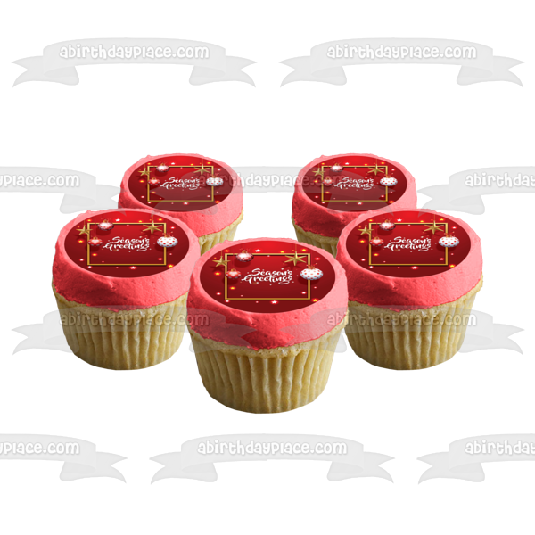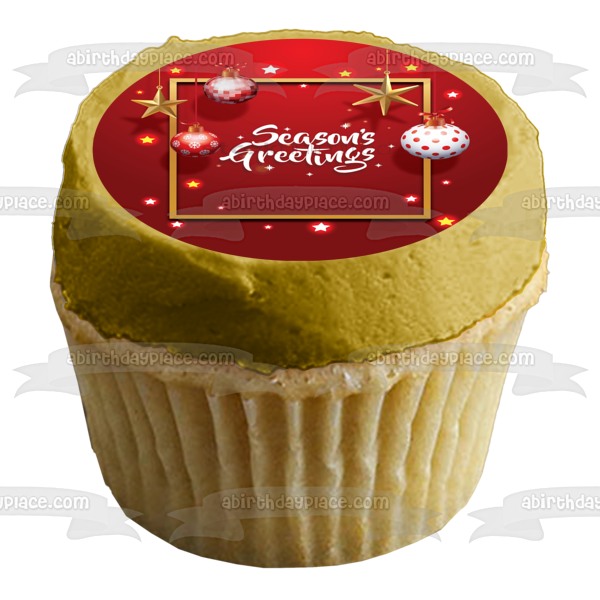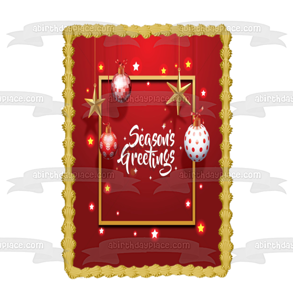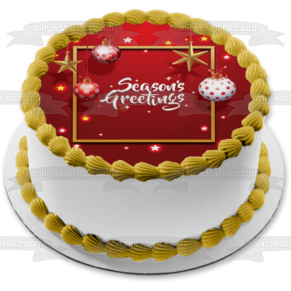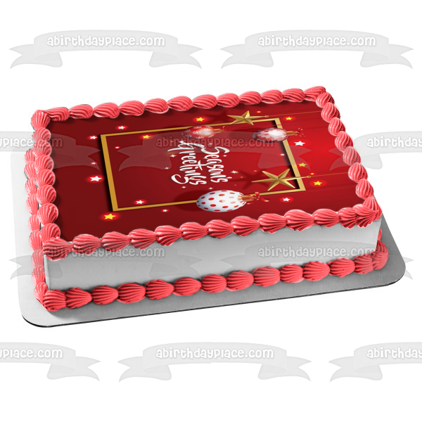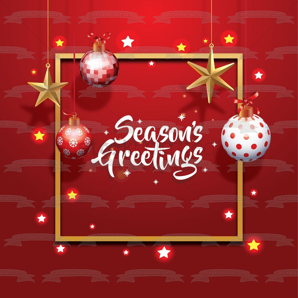 Season's Greetings Stars Christmas Bulbs Edible Cake Topper Image ABPID53069