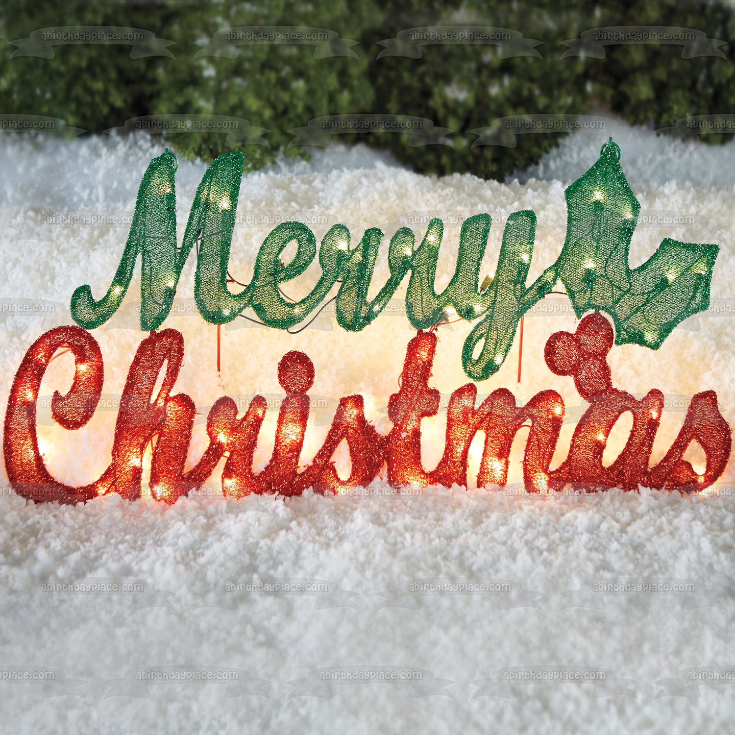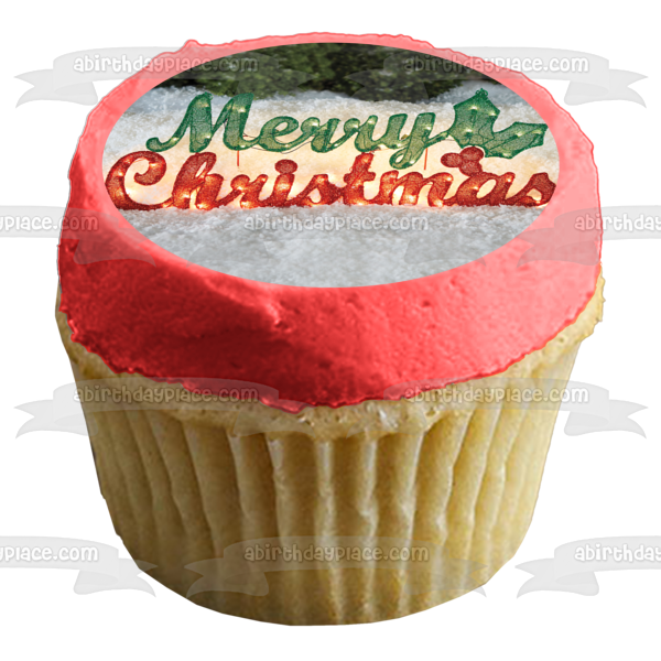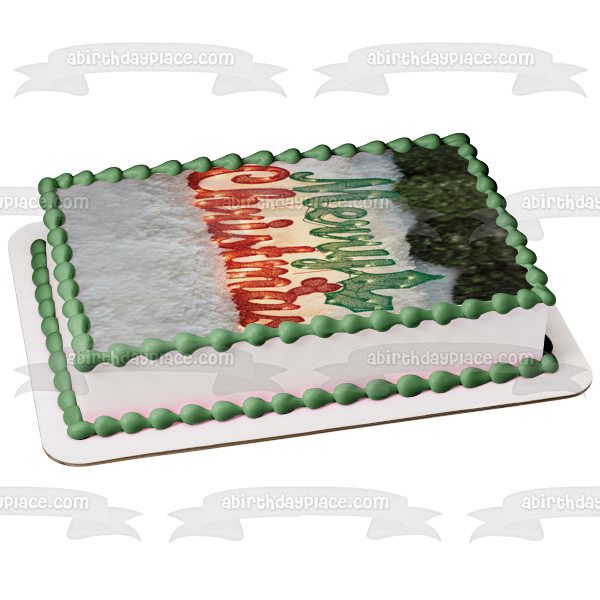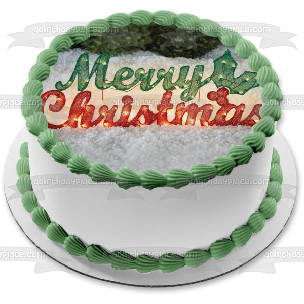 Decorate your Cake with this Merry Christmas themed Edible Cake Topper Image featuring Christmas Lights and Mistletoe!