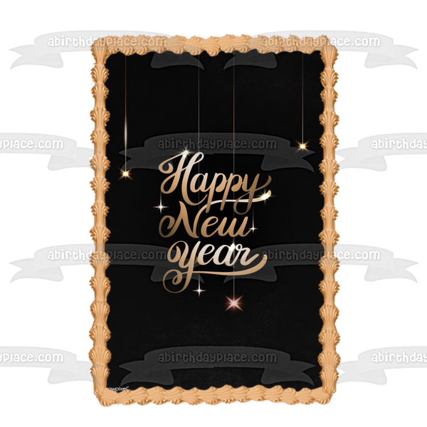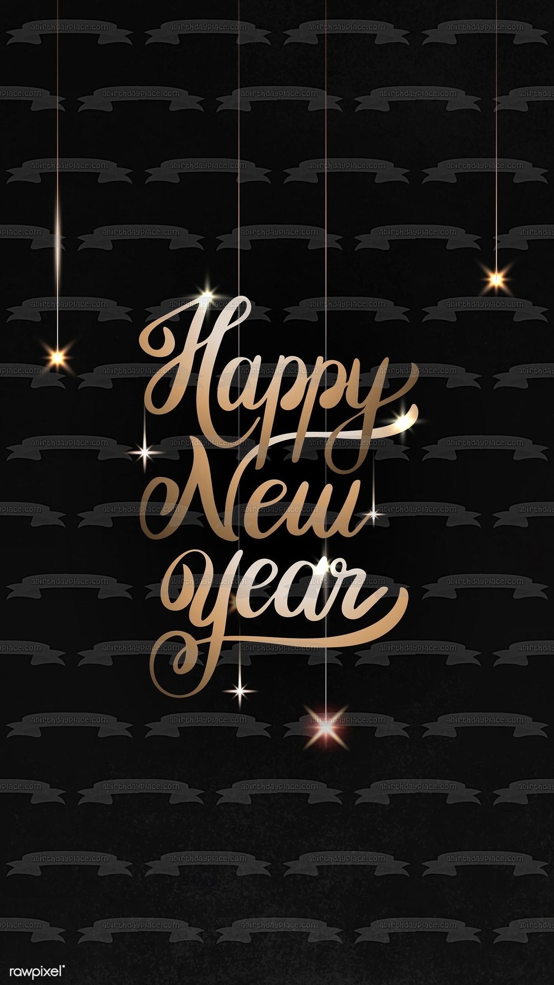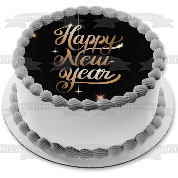Happy New Year Silver and Gold Edible Cake Topper Image ABPID53163