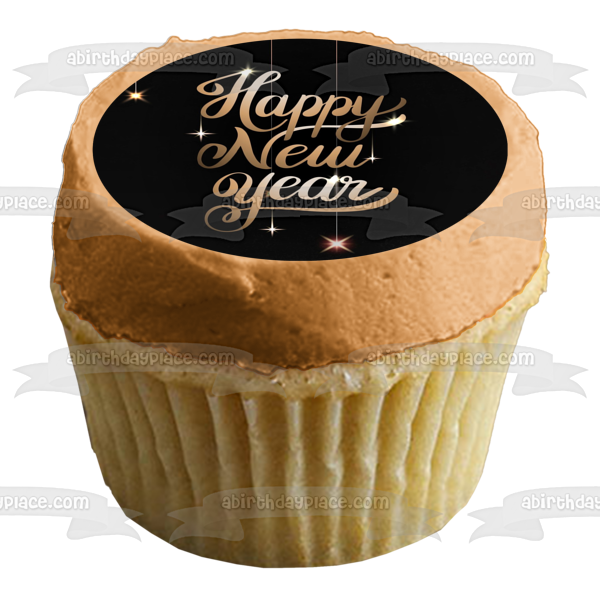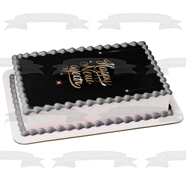 Decorate your Cake with this Silver and Gold Happy New Year themed Edible Cake Topper Image!