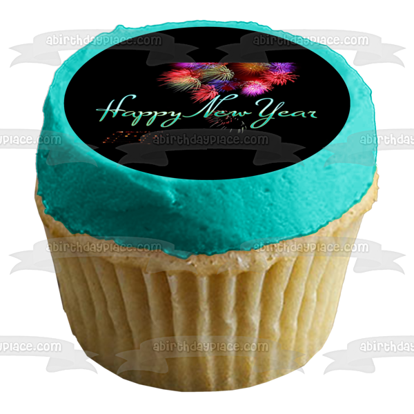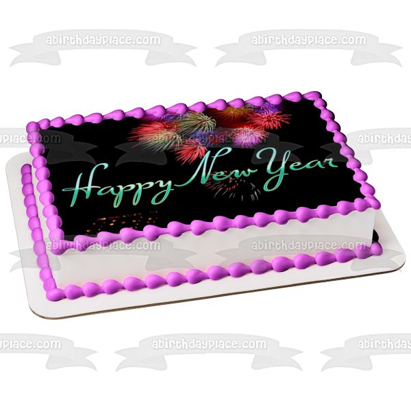 Decorate your Cake with this Happy New Year themed Edible Cake Topper Image featuring Fireworks!