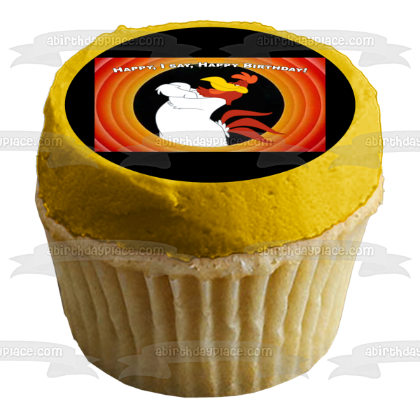 Decorate your Cake with this Looney Tunes "Happy, I Say, Happy Birthday" themed Edible Cake Topper Image featuring Foghorn Leghorn and Your Personalized Name!