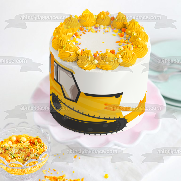 Decorate your Cake with this Construction Equipment themed Edible Cake Topper Image featuring a Bulldozer!