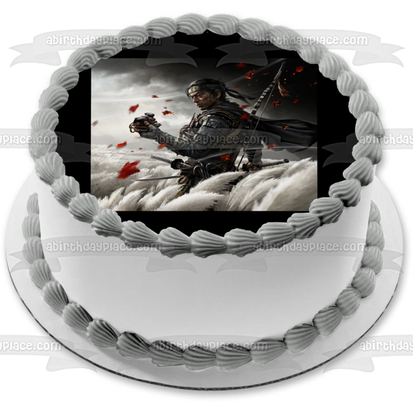 Decorate your Cake with this Ghost of Tsushima themed Edible Cake Topper Image featuring Jin Sakai the Samurai!