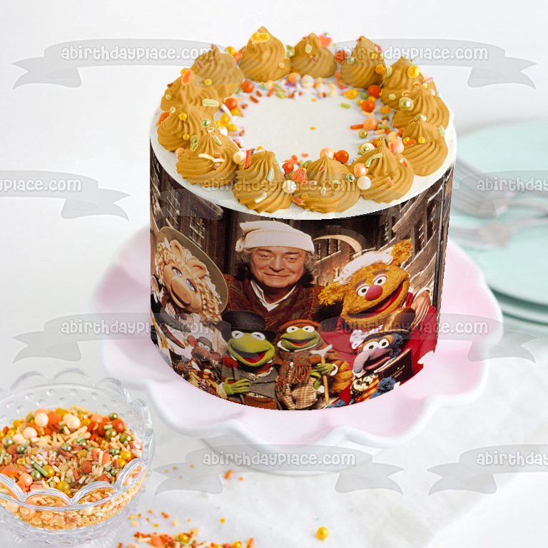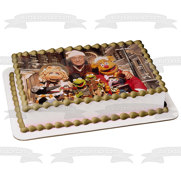Decorate your Cake with this The Muppet Christmas Carol themed Edible Cake Topper Image featuring Charles Dickens, Kermit the Frog, Miss Piggy, Gonzo, Fozzie Bear and Sam the Eagle!