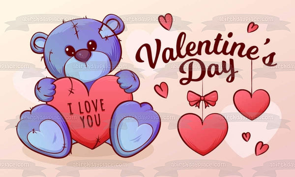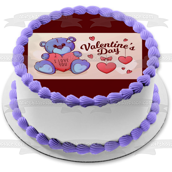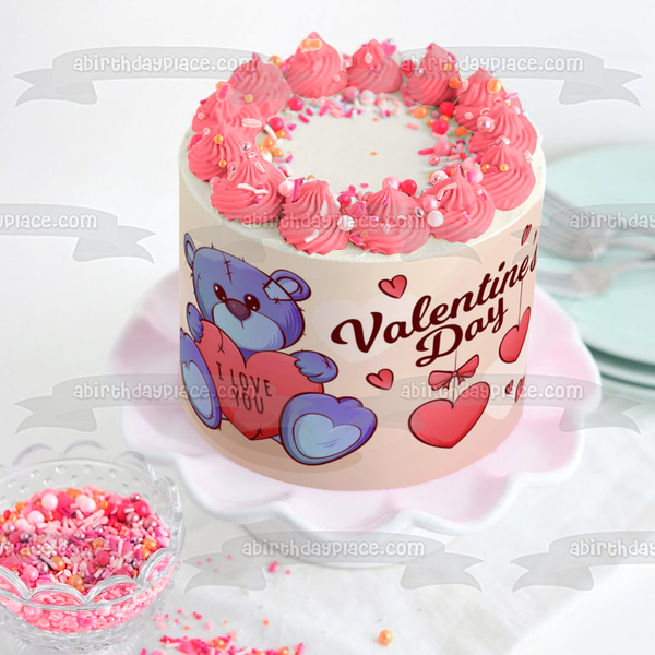 Decorate your Cake with this Happy Valentine's Day themed Edible Cake Topper Image featuring a Stuffed Bear and the words "I Love You"!