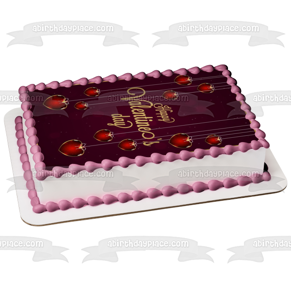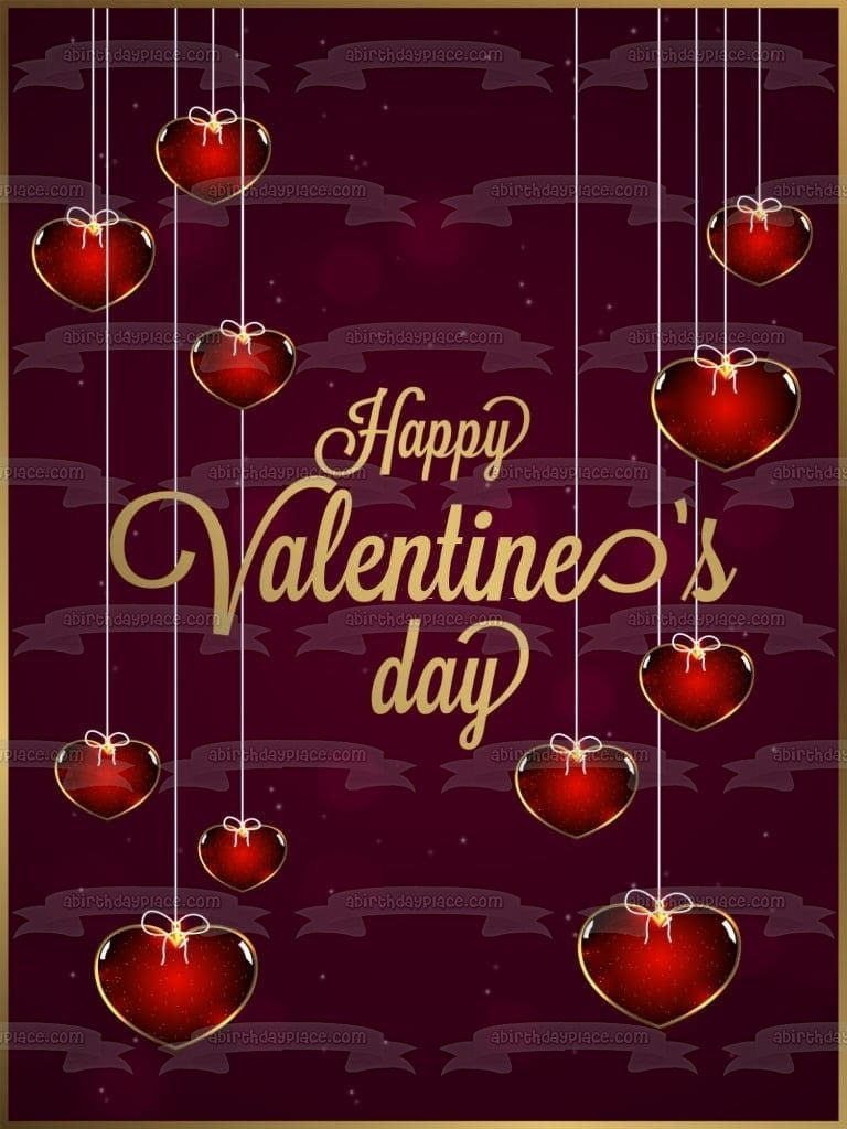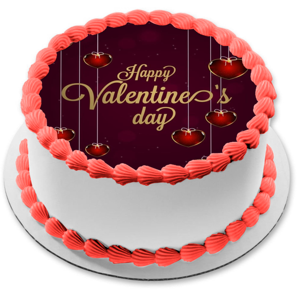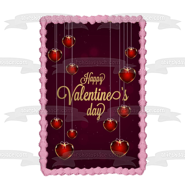 Decorate your Cake with this Happy Valentine's Day themed Edible Cake Topper Image featuring Red Hearts!