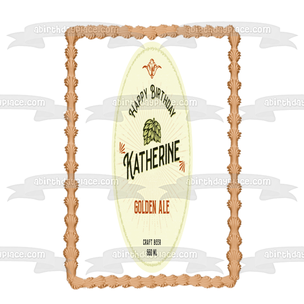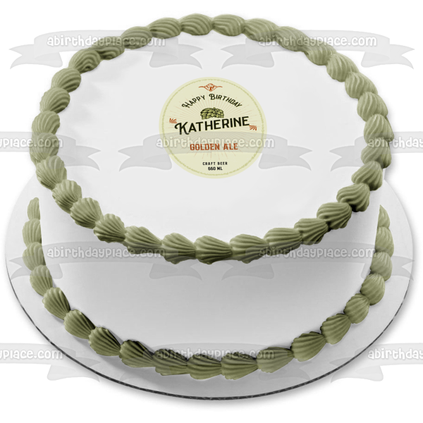 Personalize your Cake with this Golden Ale Happy Birthday themed Edible Cake Topper Image featuring a Golden Ale Label and Your Personalized Name!