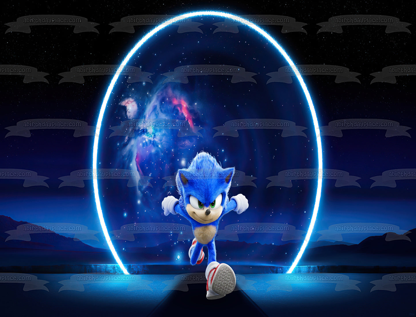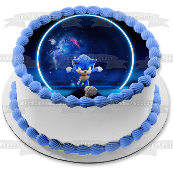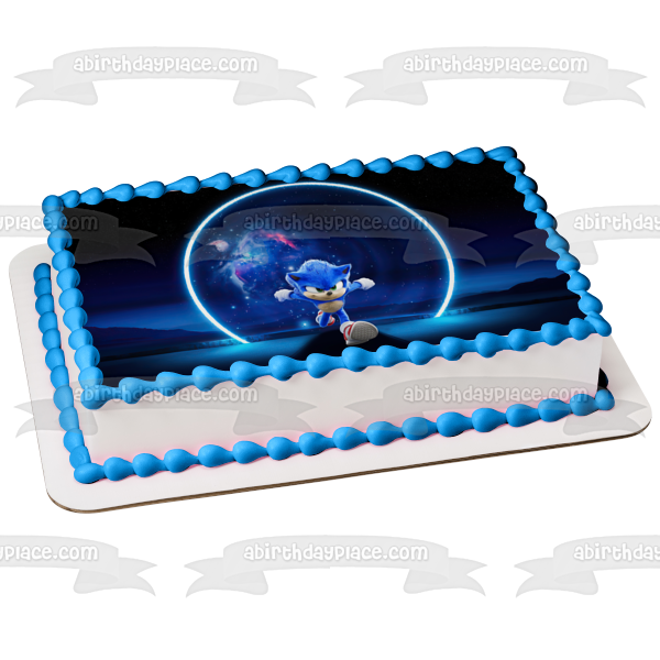 Decorate your Cake with this Sonic the Hedgehog themed Edible Cake Topper Image featuring Sonic running through the Universe!
