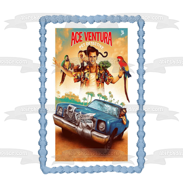 Decorate your Cake with this Ace Ventura Pet Detective themed Edible Cake Topper Image featuring the Movie Poster!